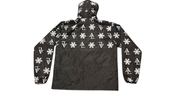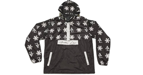 Quarter Zip Windbreaker is one of a kind! It's ideal with a pair of jeans or shorts. This windbreaker is nylon material functional to be wind and water resistant with a unique style monogram design with the brand logo and our premiere snowflake.