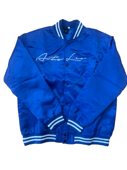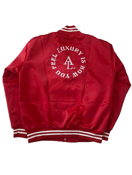 Shine amongst the rest in our Satin bomber jacket with company slogan embroidered on the back with the brand logo in the center and signature across the chest.