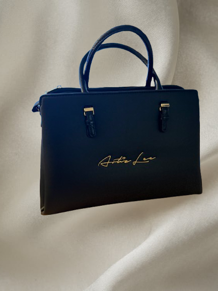 Effortless luxury in every detail. Our Black Signature Medium Tote features a sleek structured silhouette, finished with gold signature hardware for a timeless, elevated look. Inside, a removable inner bag spacious enough to fit an iPad keeps your essentials organized without sacrificing style.